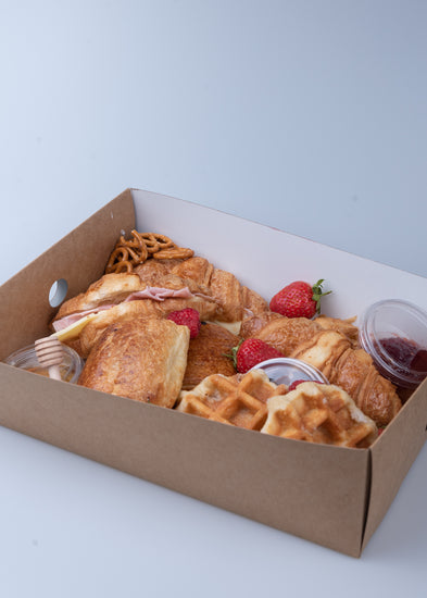 The Brunch Box is loaded with a mouth-watering selection of brunch time favourites - Whether you're enjoying breakfast in bed or make those morning meetings more bearable this is the box for you!